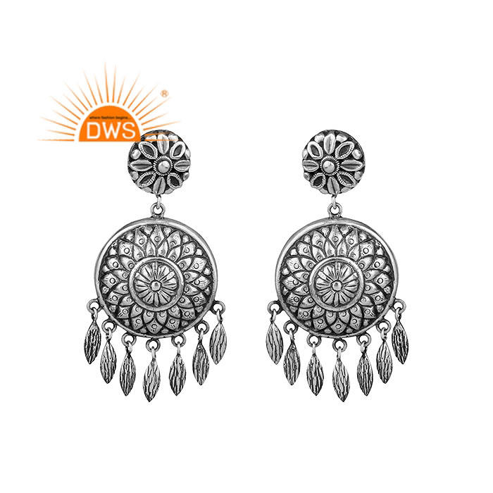 Pendientes de Plata Oxidada Tradicionales, Pendientes de Plata de Ley Tallados a Mano, Fabricante de Joyería, Colección Vintage
