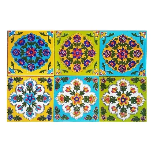 Azulejos de cerámica con estampado tradicional multicolor de 4x4 ''Paquete de 6 cerámicas decorativas