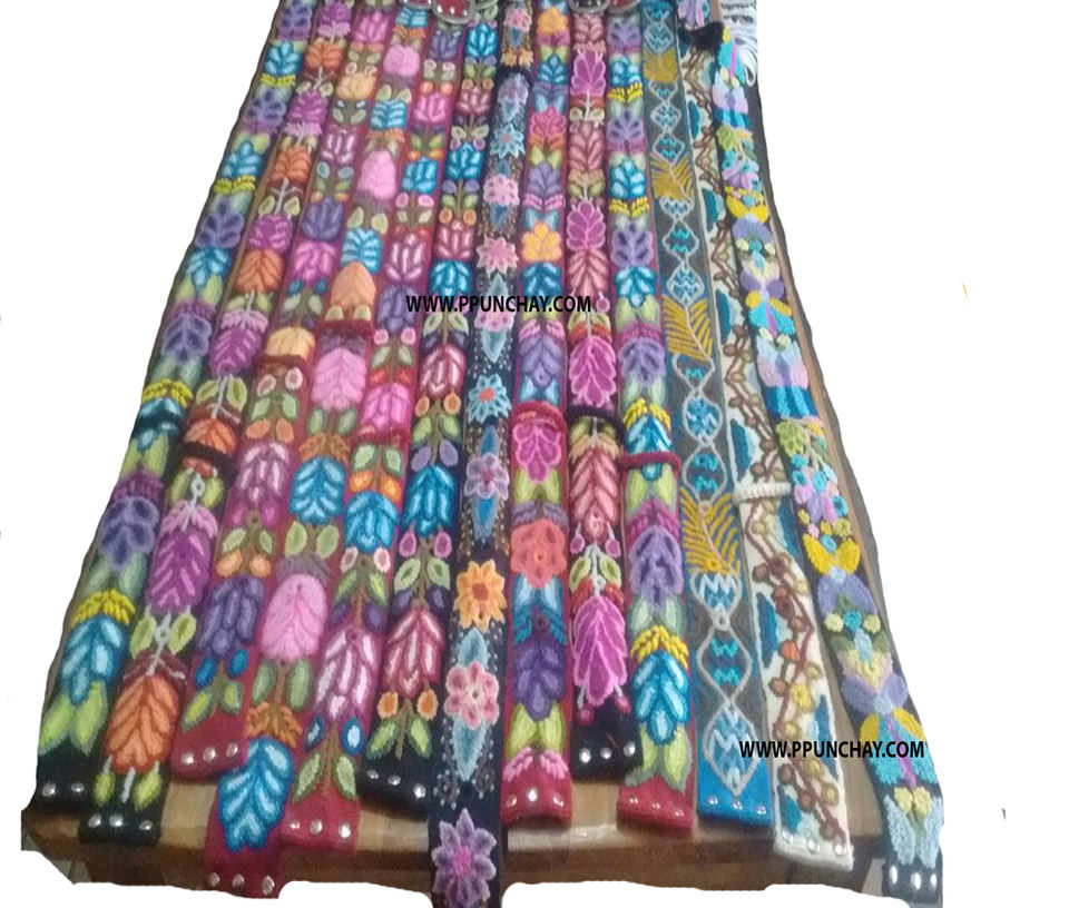 Cinturones de diseño peruano tradicional Bordado andino Chumpi Ppunchay Artesanía peruana auténtica