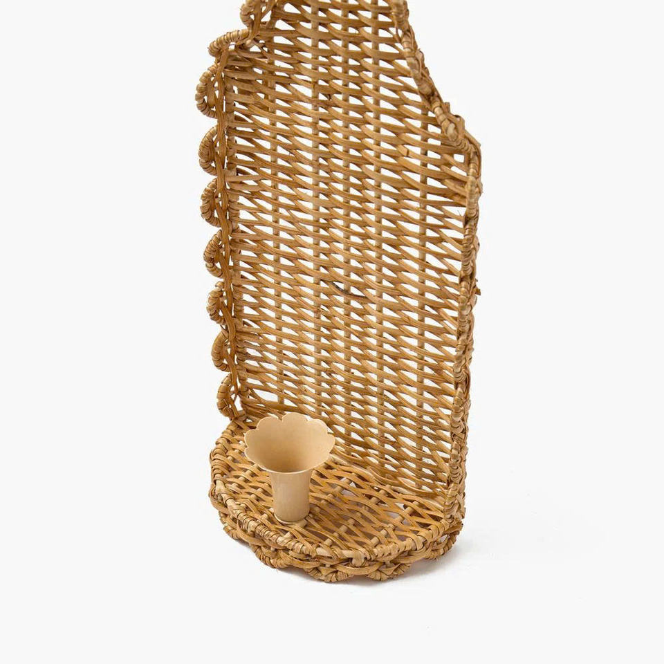 Aplique de Pared de Ratán Tradicional con Detalle de Arco, Portavelas de Mimbre Tejido a Mano para un Estilo Interior Atemporal
