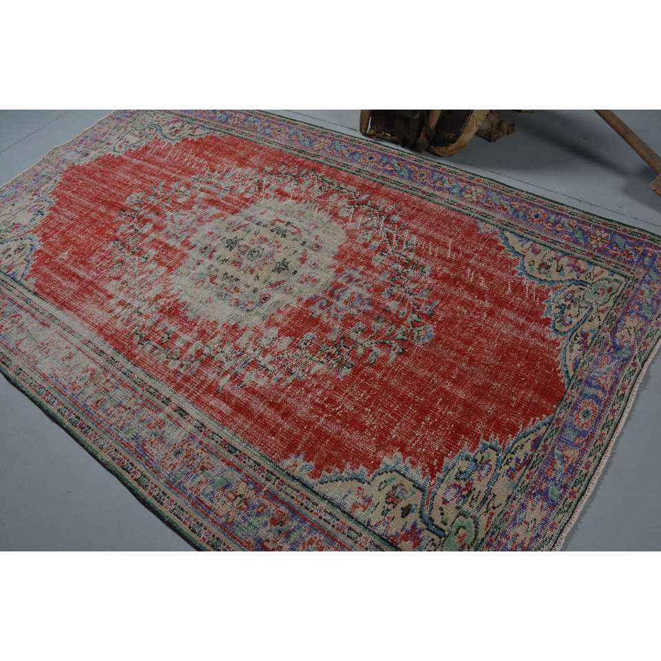 Alfombra tradicional de lana rojo Beige de 5,5x8,9 pies Vintage turco área grande rectángulo Patchwork látex abstracto para uso en el pasillo
