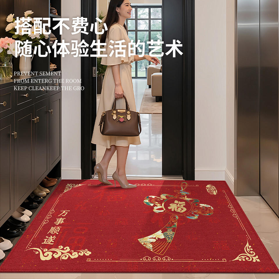 Alfombra Roja Tradicional Rectangular de Fibra de Poliéster para el Año Nuevo Chino, Diseño de Fortuna y Prosperidad para Entrada Interior