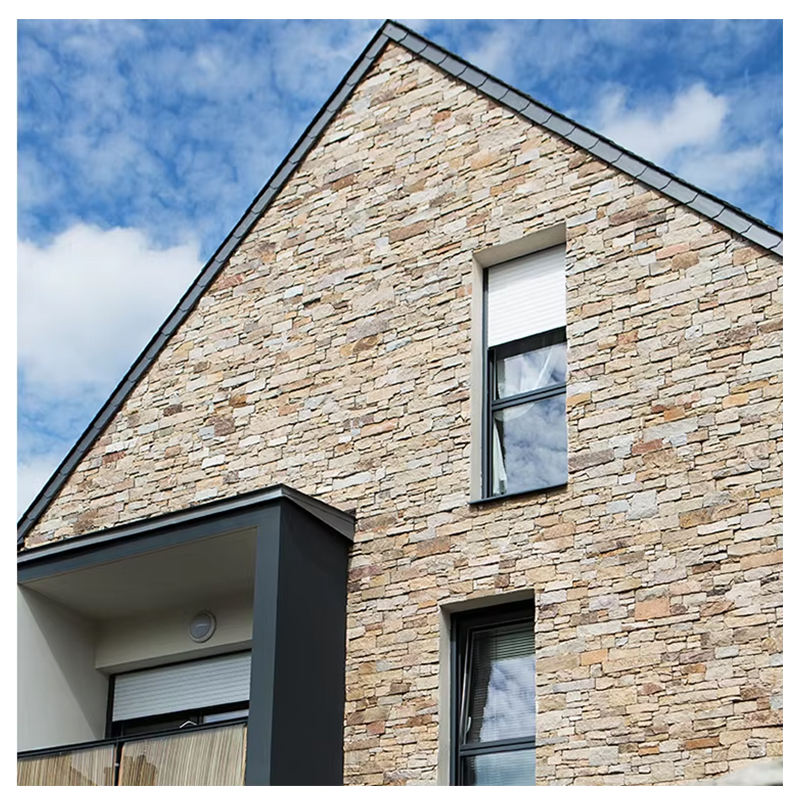 Revestimiento de pared de repisa de piedra Natural Beige rústico tradicional paneles de esquina antiácido DE CARA dividida Natural para Exterior e Interior