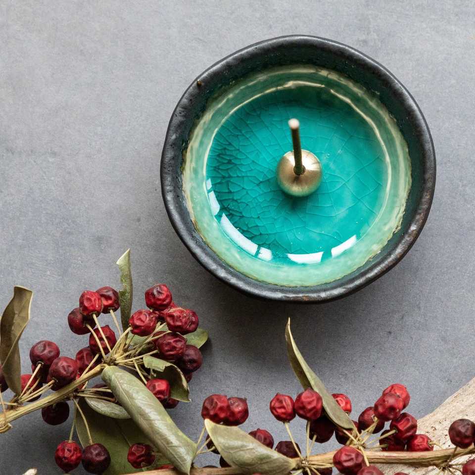 Set de Regalo de Incienso Tradicional con Porta Incienso, Incienso de Aguamarina y Pachulí
