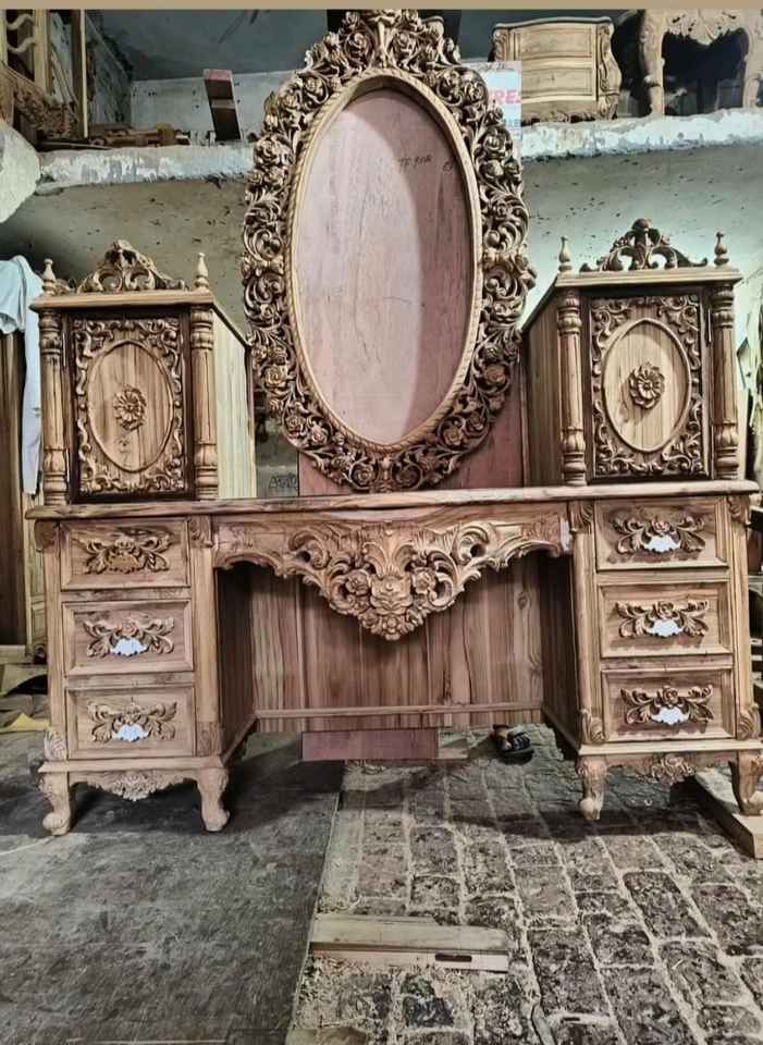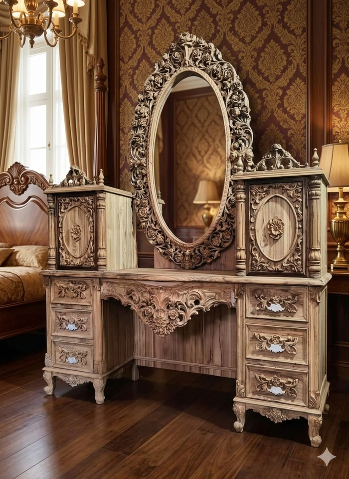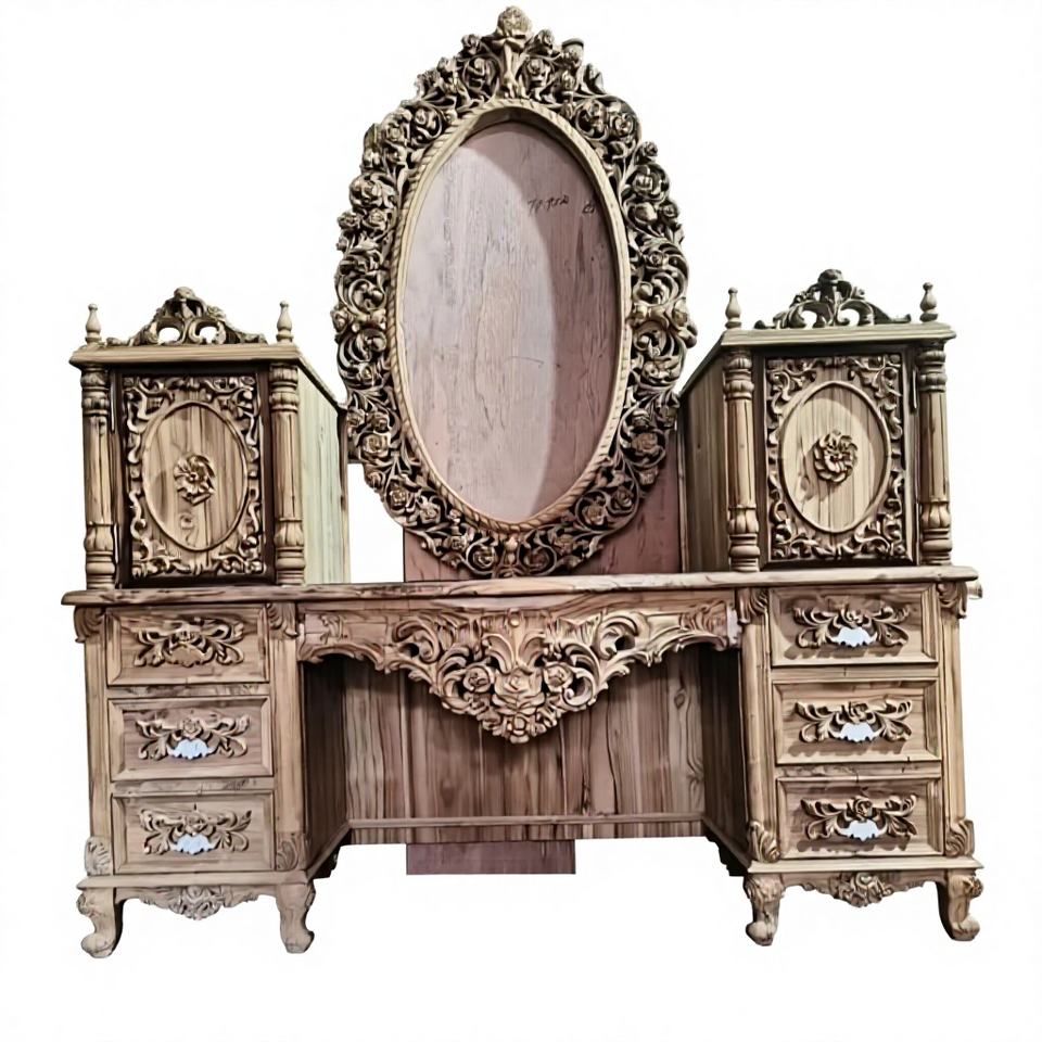 Tocador Multifuncional de Estilo Tradicional con Espejo y Taburete, Popular para Almacenamiento de Maquillaje