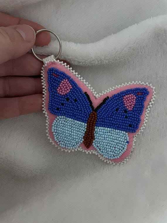 Llavero de hilo tradicional con detalles en cuentas