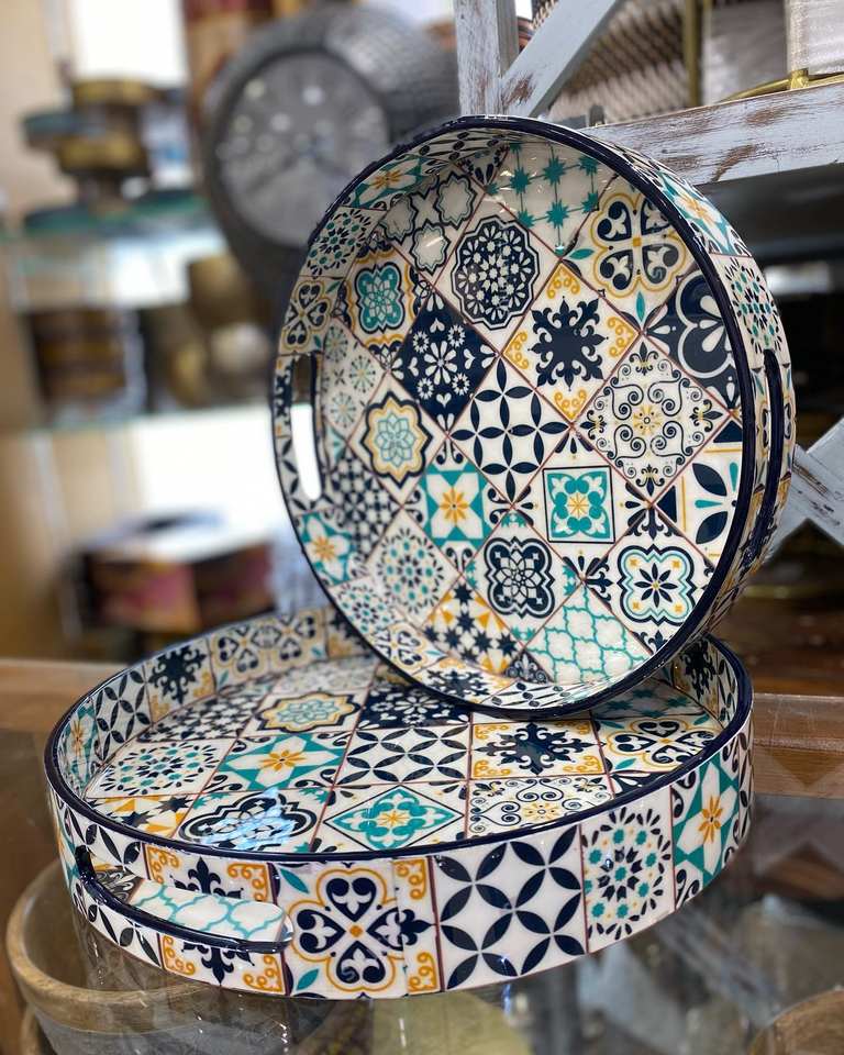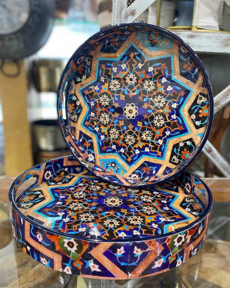 Bandeja de Servicio Turca Tradicional Personalizable de Resina con Acabado Brillante, Diseño Pintado a Mano, Duradera y Hecha a Mano para Alimentos Decorativos