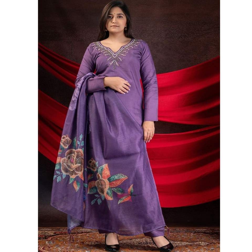 Tipo de tejido:Top + Parte de abajo-Viscosa Roman Silk Dupatta-Viscose chanderi