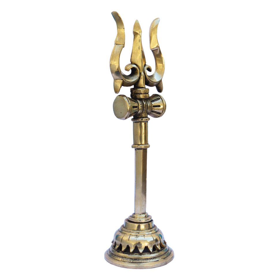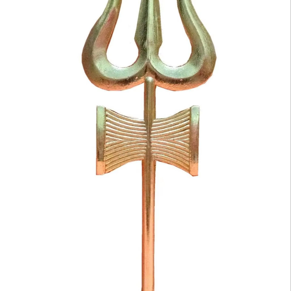 Escultura Trishul de latón tradicional y chapado en oro, un símbolo de Tridente divino. Disponible a precios mayoristas.