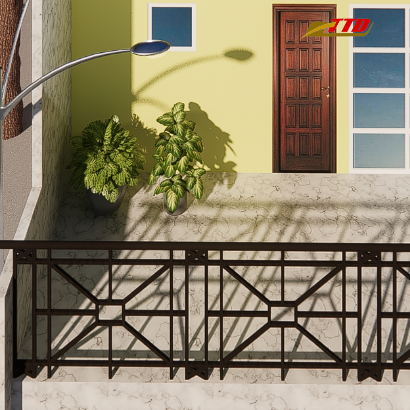 Barandilla de balcón tradicional de hierro fundido con detalles de desplazamiento, detalles de diseño vintage y construcción robusta para fachadas