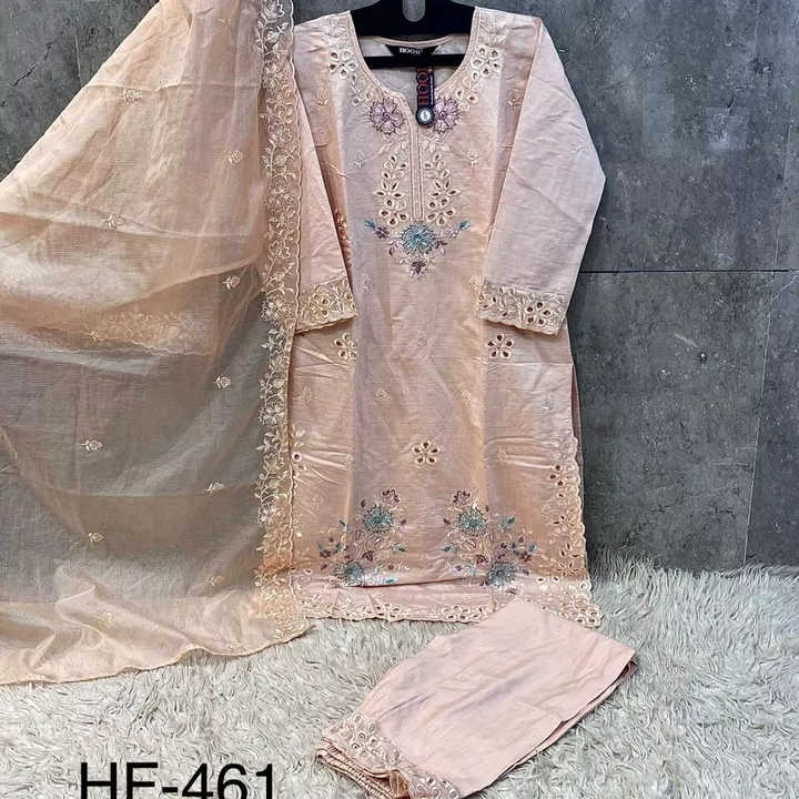 Conjunto de top y pantalón de viscosa con cristales tradicionales y dupatta de organza pesada con detalles, para un atuendo elegante en tallas XL y XXL.