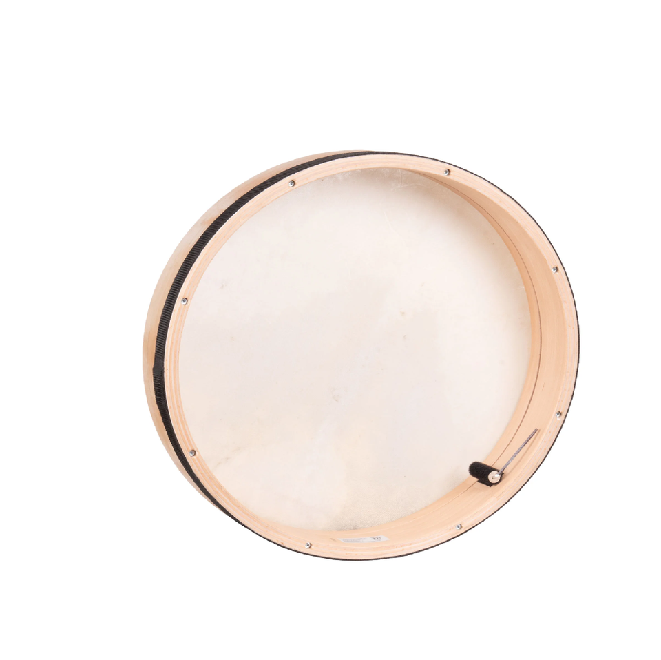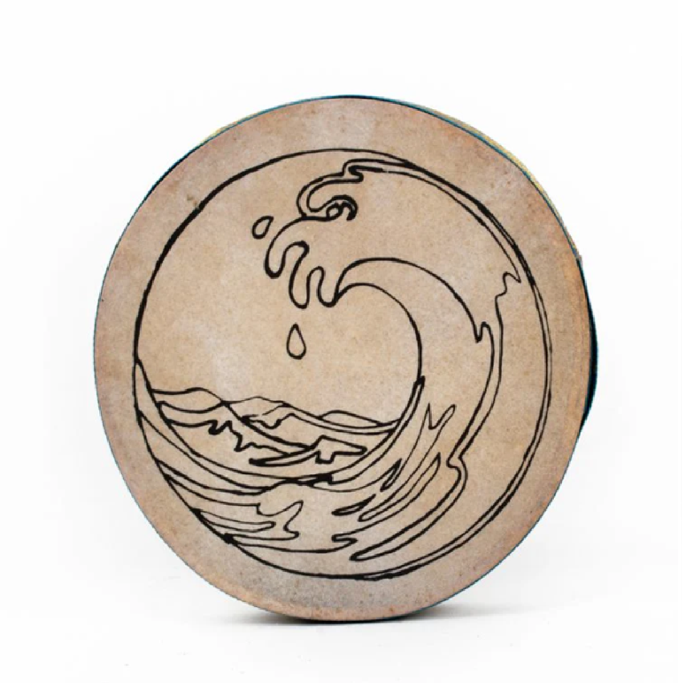 Tambor oceánico tradicional de cuero crudo, cosido a mano para un aspecto y sonido auténticos. Disponible a precios mayoristas.