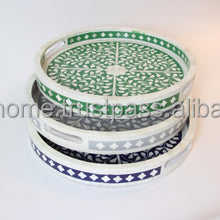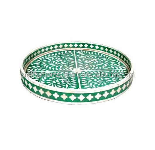 Bandeja de servicio redonda con incrustaciones de hueso para servir en casa, Hotel, restaurante, bares, en diferentes colores, personalizada, artesanal, hogar
