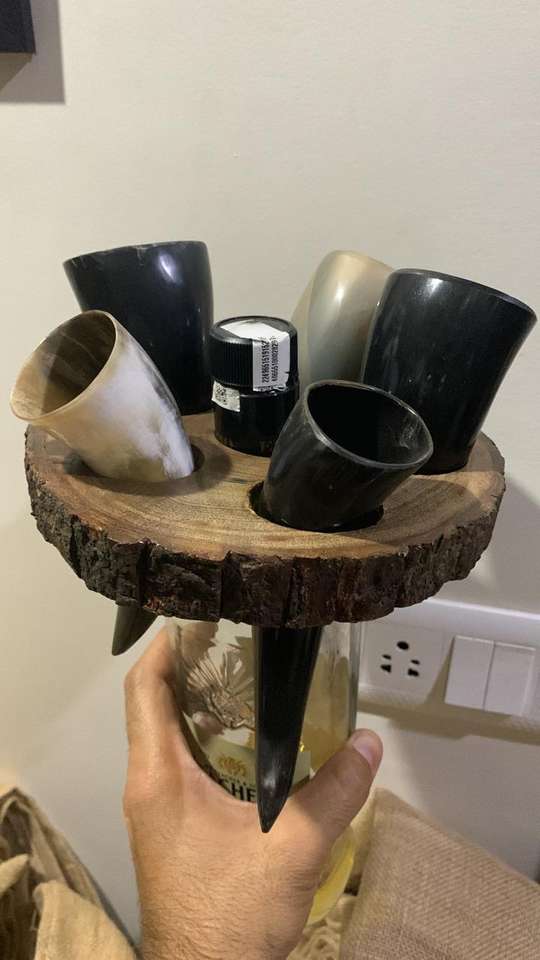 Tradnary-bocina para beber de búhos con soporte de madera, juego de bocina Circular para Bar, fiesta, casa, oficina y restaurante