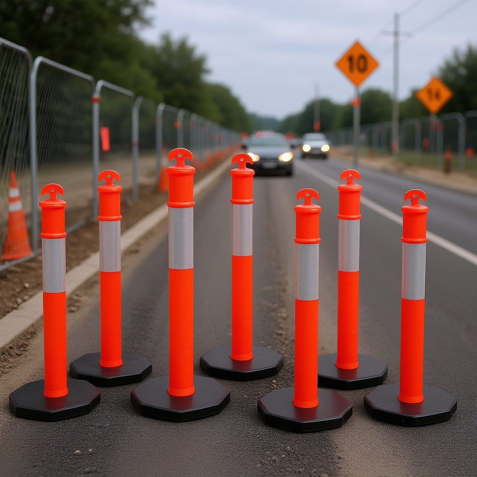 Postes Delimitadores de Tráfico de 44 Pulgadas de PE con Banda Reflectante, Base de Goma de 10 Pulgadas, 16 Pulgadas para Obras de Construcción