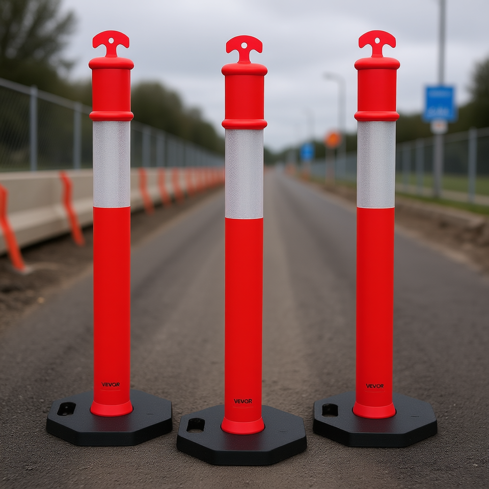 Postes Delimitadores de Tráfico de 48 Pulgadas, Rojos Reflectantes con Base Ponderada para Obras de Construcción, Carreteras y Estacionamientos