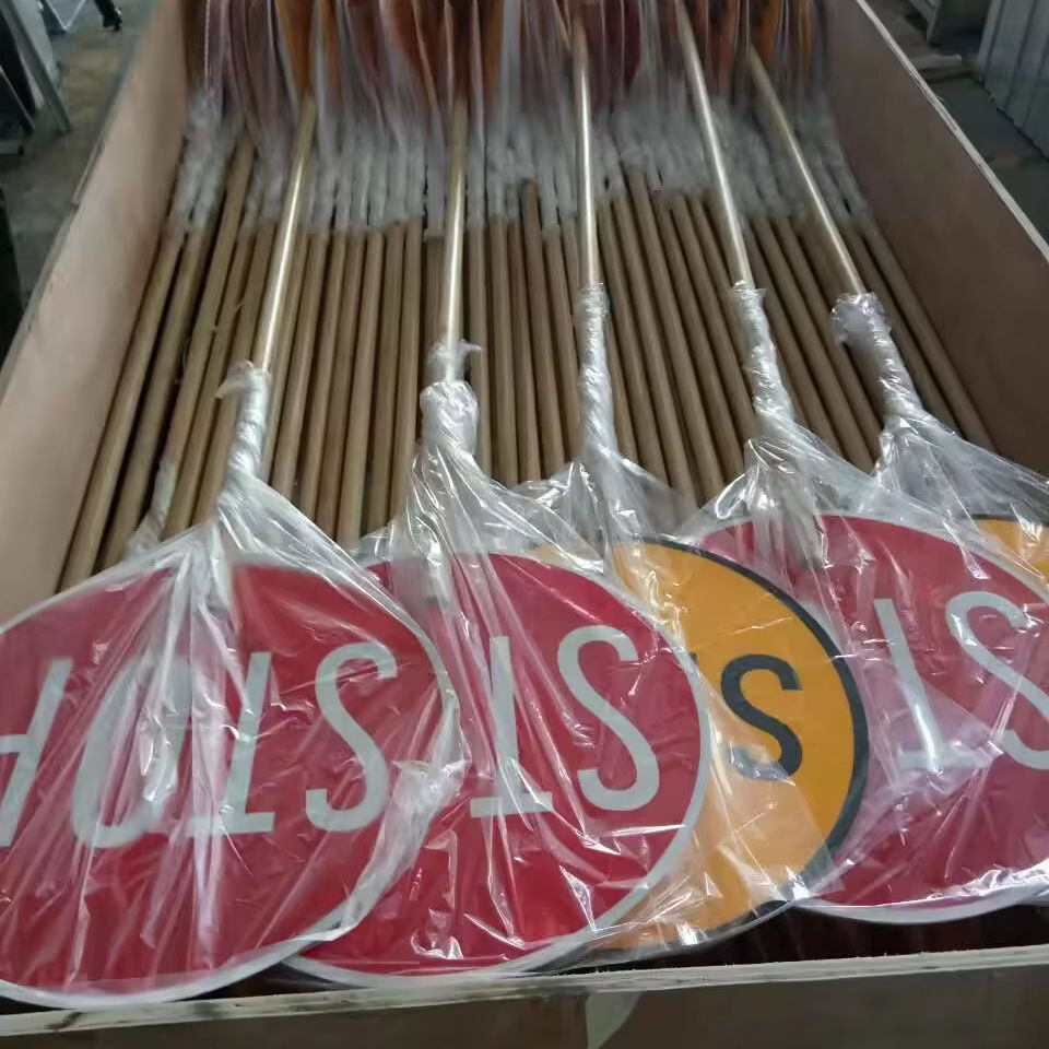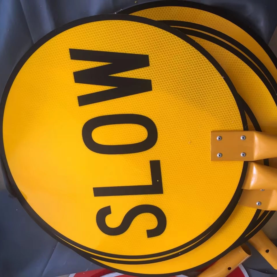 Señal de Tráfico Australiana Clase 1, Película Reflectante, Mango Telescópico de Aluminio de 450 mm, Señal de Parada Lenta, STOP SLOW BAT
