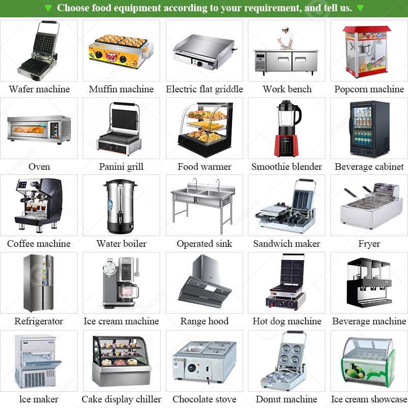 Broiler, Estufa Quemador, Parrilla de carbón, Gama Combo, Freidora profunda, Flat-top Grill, Plancha, Microondas, Horno, Prensa Panini, Horno de pizzaEquipo de cocina