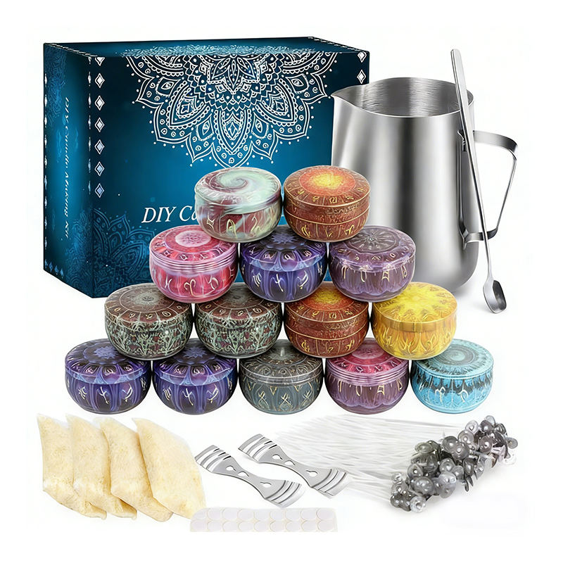 Set de Regalo de Velas Tranquilidad en Lata Compacta, Mezcla de Soja para Aromaterapia, Colección Boutique Festiva, Selección de Lujo