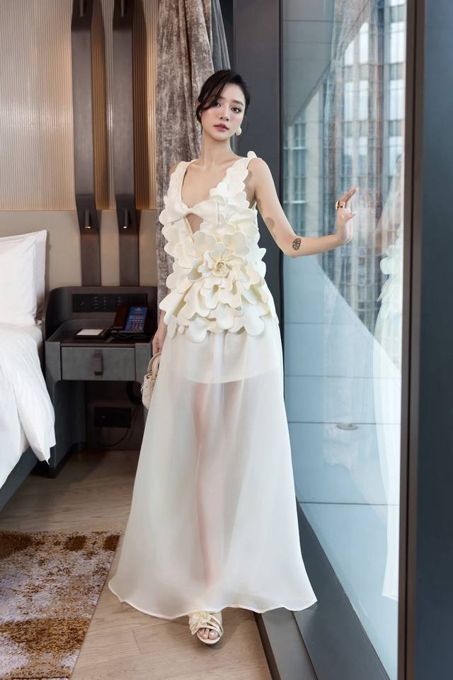 Vestido Maxi Floral 3D Blanco Puro, Estilo Fiesta, Garantía de Destacar, Hecho en Vietnam