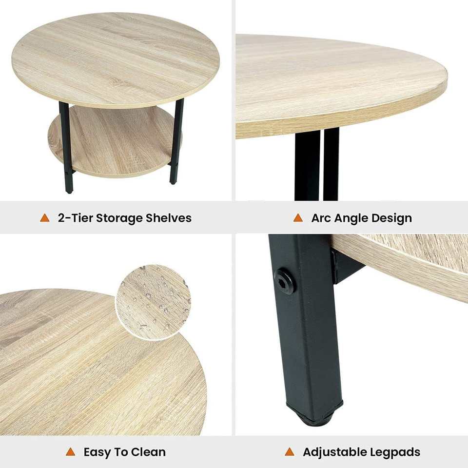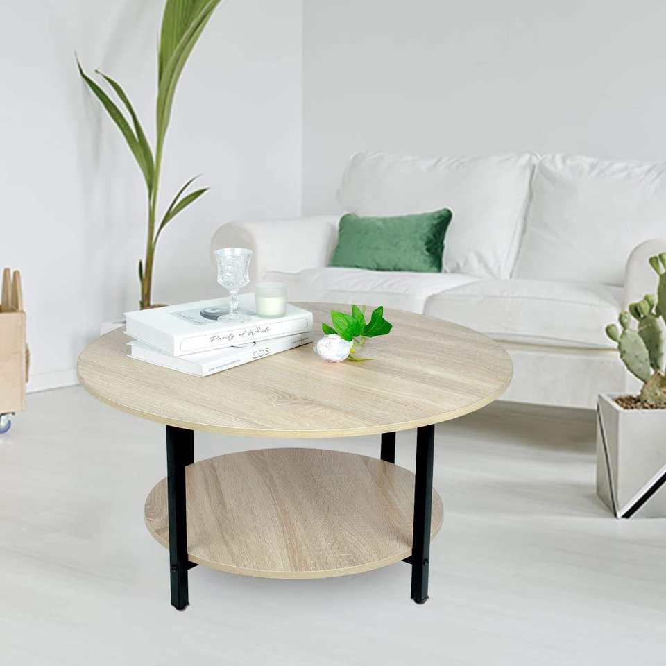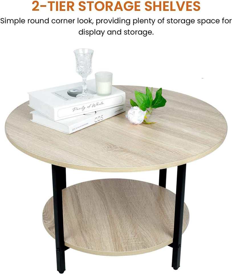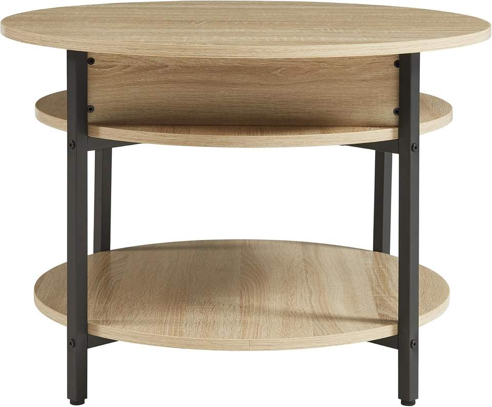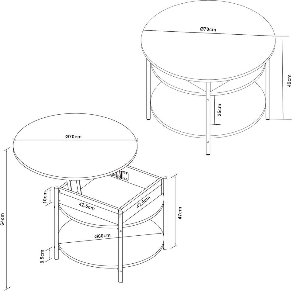 Mesa de Centro Redonda Transformable con Tapa Plegable y Almacenamiento Oculto, Moderna Mesa Elevable con Estructura de Acero y Tablero de Partículas, Estable