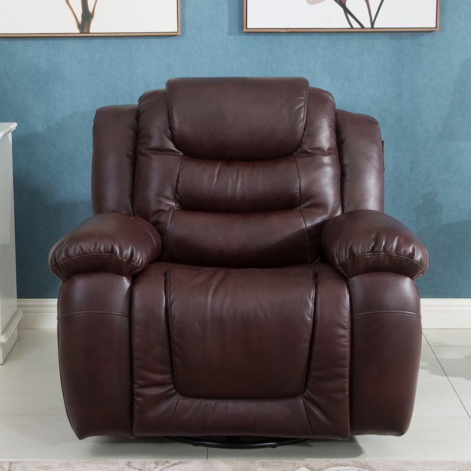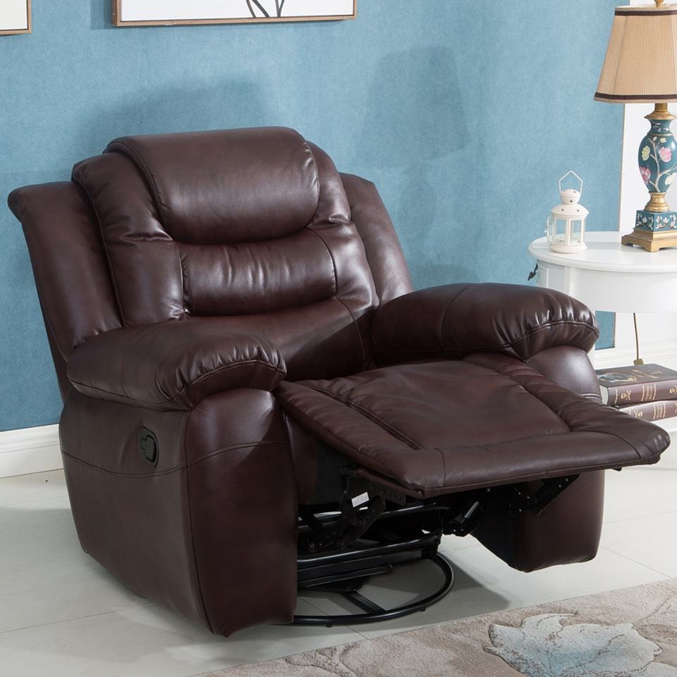 Diseño de transición Asiento único Uso doméstico Muebles Manija de cuero vivo Silla reclinable manual Silla giratoria y balancín