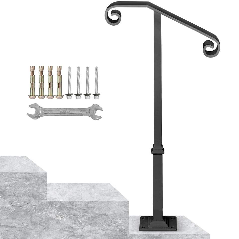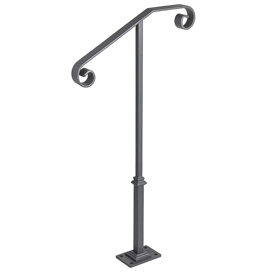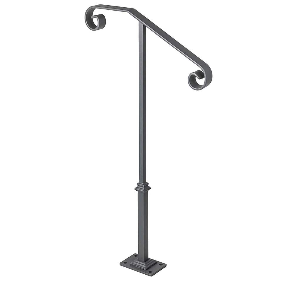 Barandillas de hierro forjado gris transicional para escalones exteriores, barandilla de una sola columna para escaleras, dispositivo de asistencia para porche para 1-2 escalones