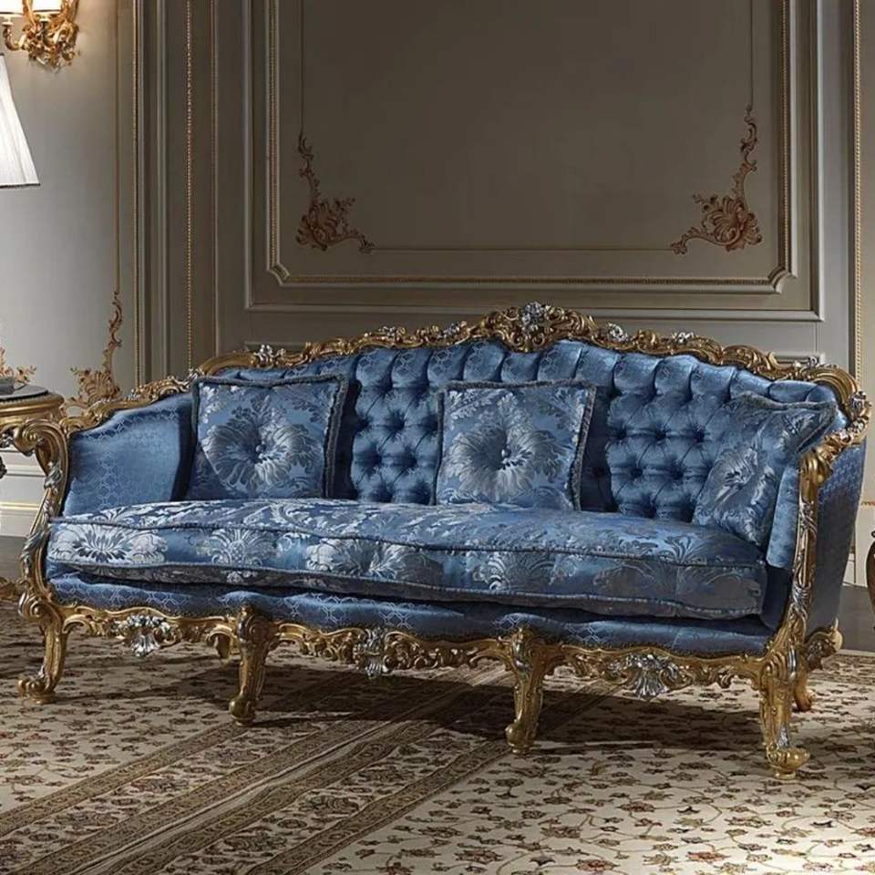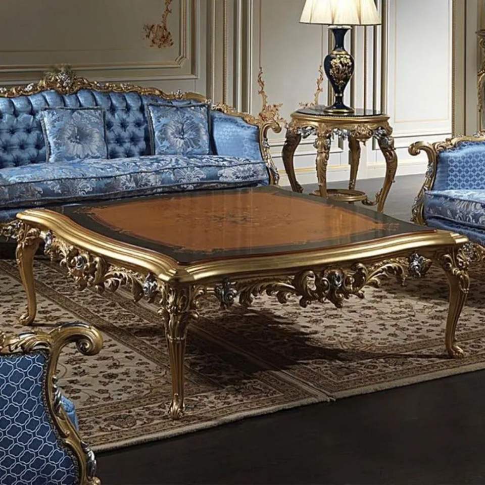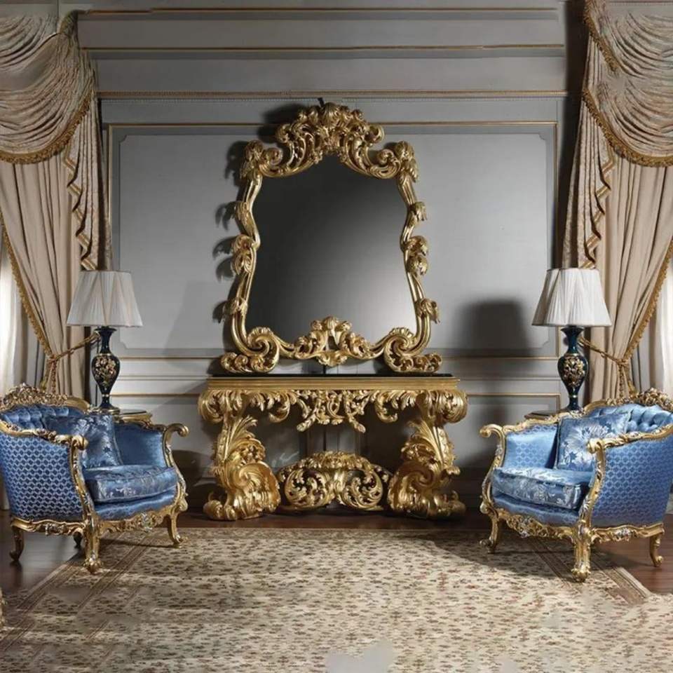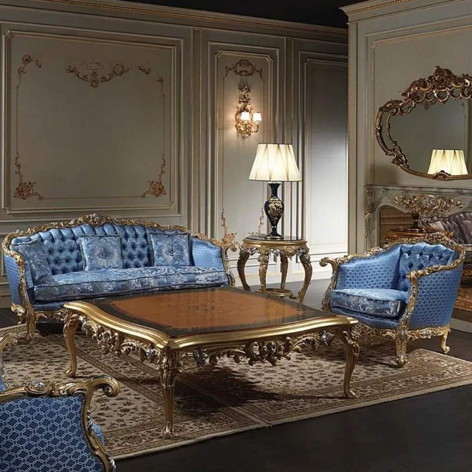 Juego de Sofás Seccionales en Forma de L de Madera Sólida con Detalles Tallados en Oro, Diseño Ecológico para Sala de Estar, Apartamento u Hotel