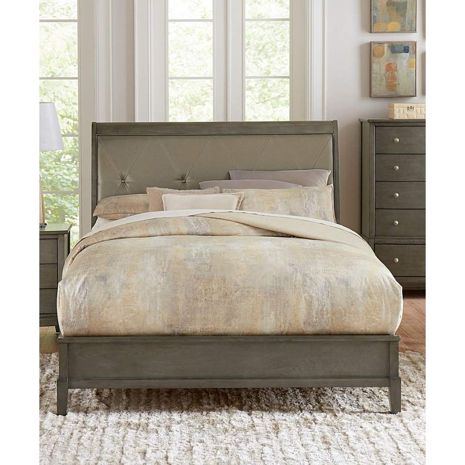 Cama Queen Size Estilo Transicional Tapizada en Cuero Sintético Gris con Cabecera Acolchada con Botones
