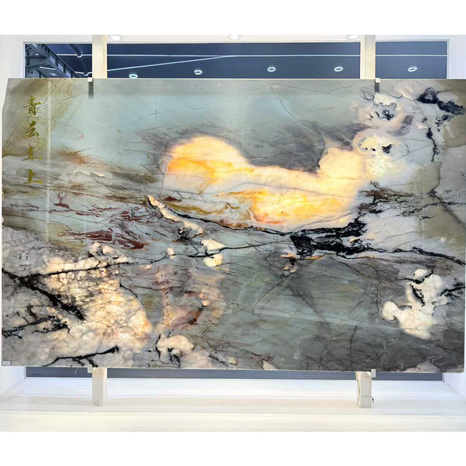Panel de pared de mármol luminoso con función de retroiluminación de cuarcita de cristal Laguna translúcido, azulejo de suelo, encimera de muebles brillantes