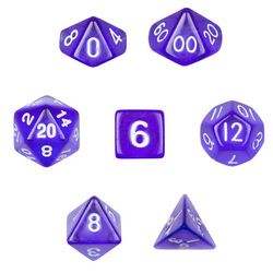 Juego de dados poliédricos translúcidos morados de 7 piezas en bolsa de terciopelo