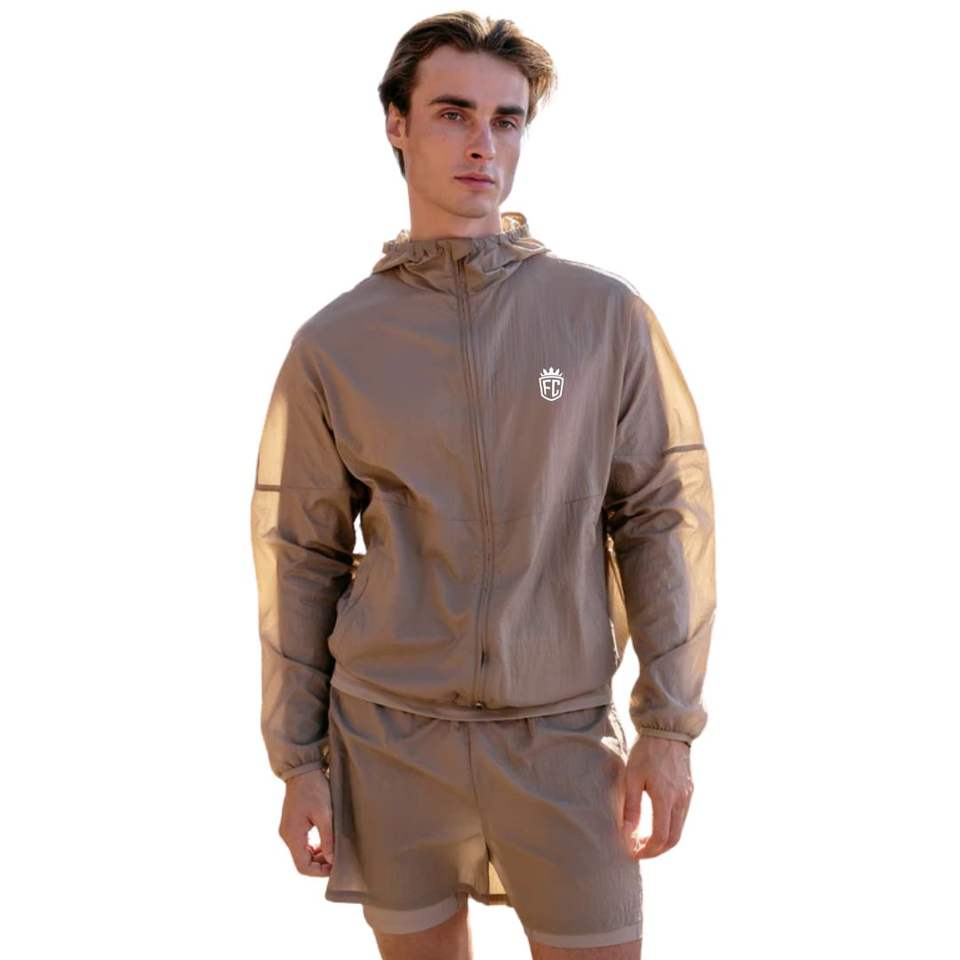 Conjunto de Chaqueta Cortavientos Translúcida y Pantalones Cortos para Hombre, Chaqueta Ligera con Capucha y Cintura Elástica, Conjunto Deportivo para Exteriores en Beige