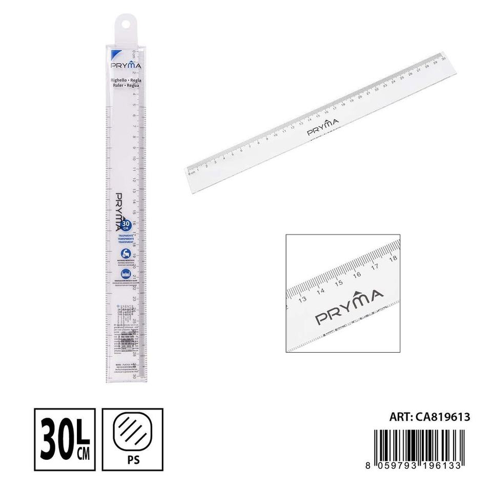 Regla transparente de 30 cm para papelería de oficina y Escuela Artículo 8059793196133
