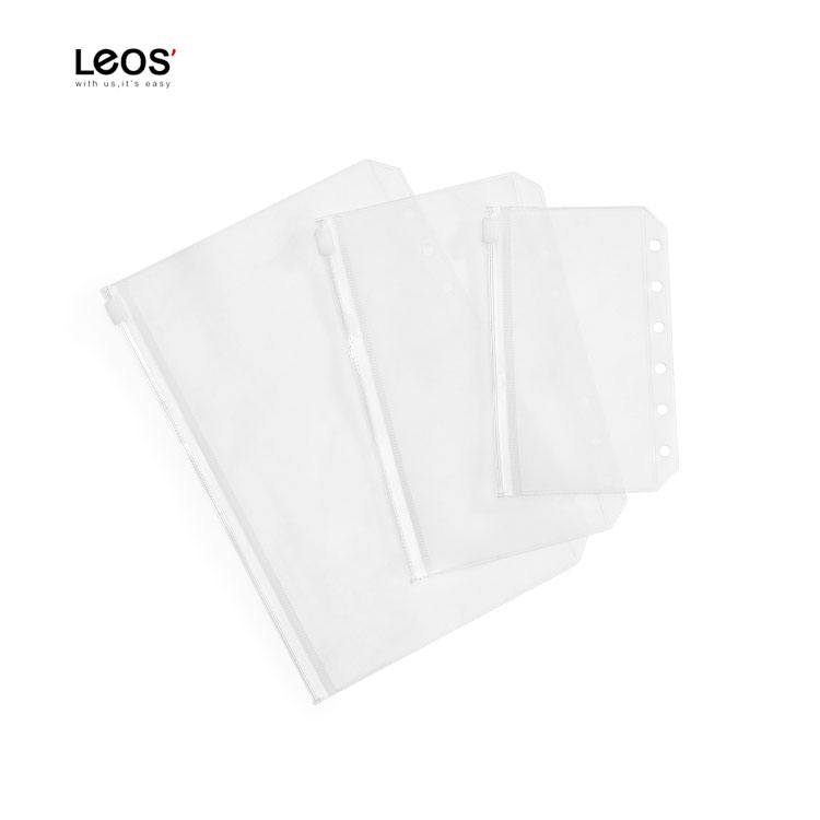 Carpeta Transparente de PVC con 6 Anillas y Cierre de Cremallera para Cuadernos, Agendas y Accesorios, Marca Leos