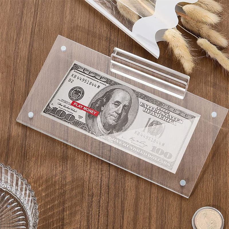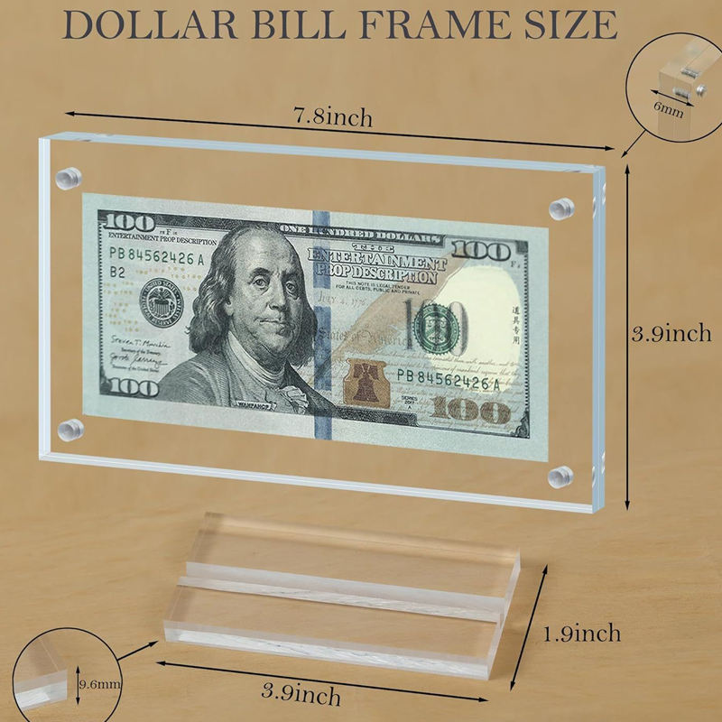 Marco de exhibición de billetes de acrílico transparente, soporte para colección de billetes domésticos con base, 2026, venta directa de fábrica, gran éxito de ventas