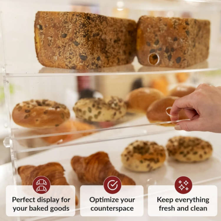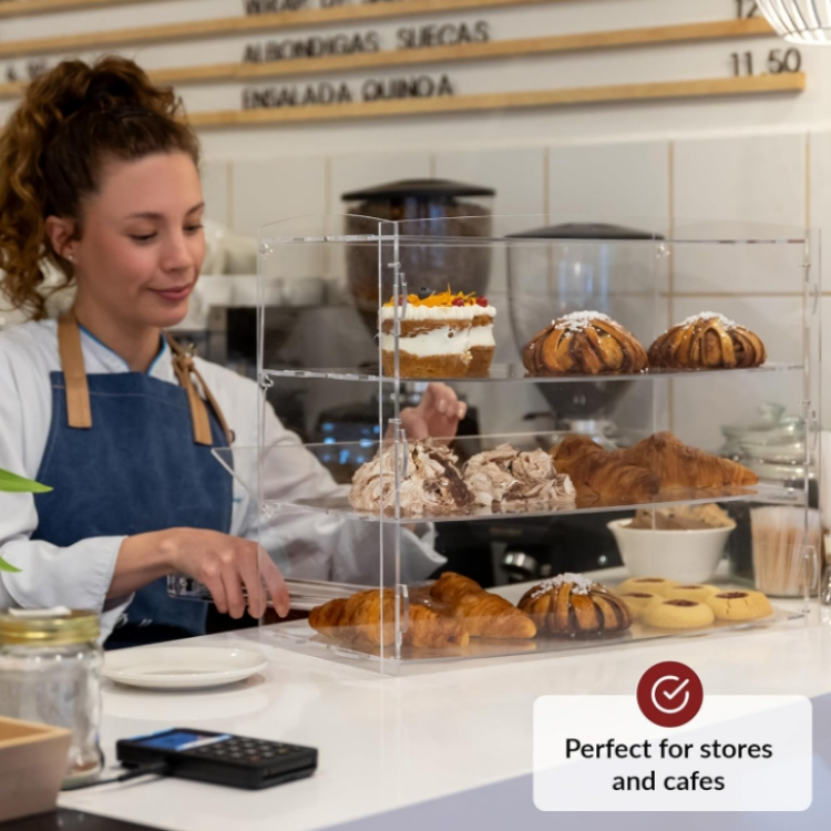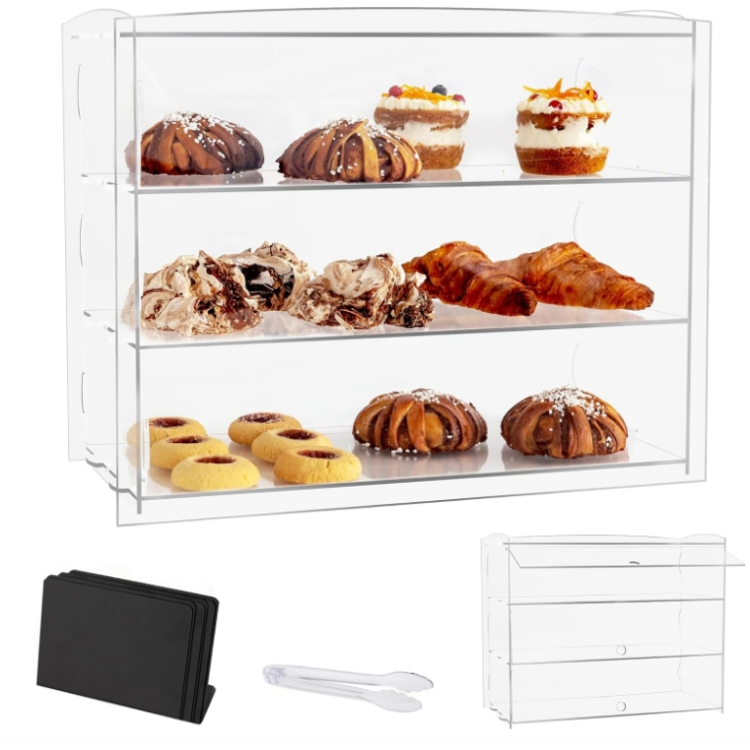 Vitrina de acrílico transparente, vitrina de pastelería de panadería de 3 capas, postre para figuritas, monedas, recuerdos deportivos, armas