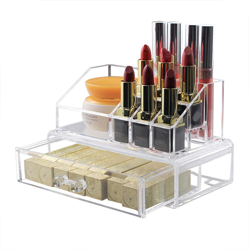 Caja de almacenamiento de maquillaje acrílico transparente, cajón superior, productos de belleza para el cuidado de la piel, acabado de escritorio, cosméticos, sala de estar adecuada