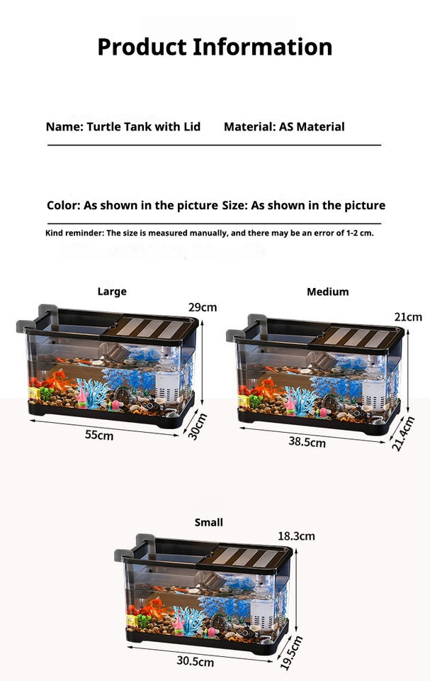 Acuario Ecológico Pequeño de Escritorio, Material AS, Tanque para Tortugas con Filtro Integrado, para Uso en Sala de Estar