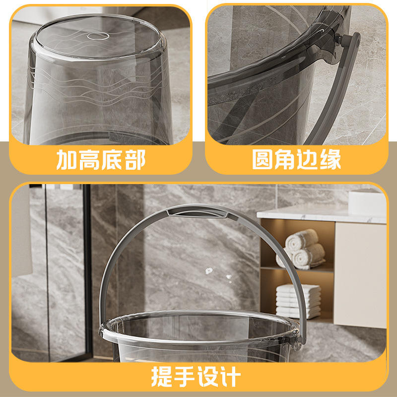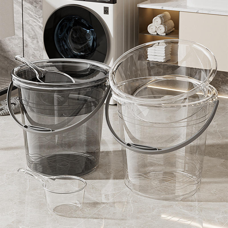 Juego de bañera transparente con tapa, portátil, redonda, de gran capacidad, para uso doméstico en el baño, lavabo de tres piezas y cucharón