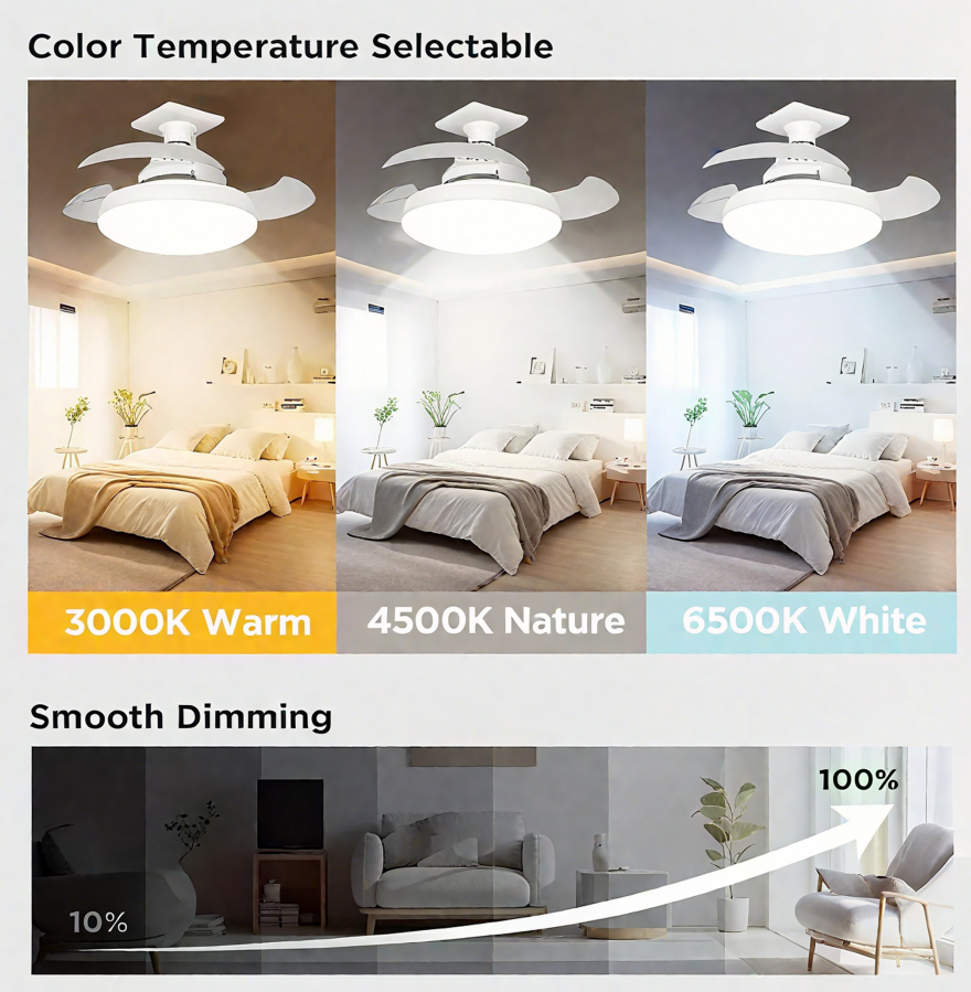 Ventilador de techo de hoja transparente con kit de luz, control remoto, diseño invisible moderno