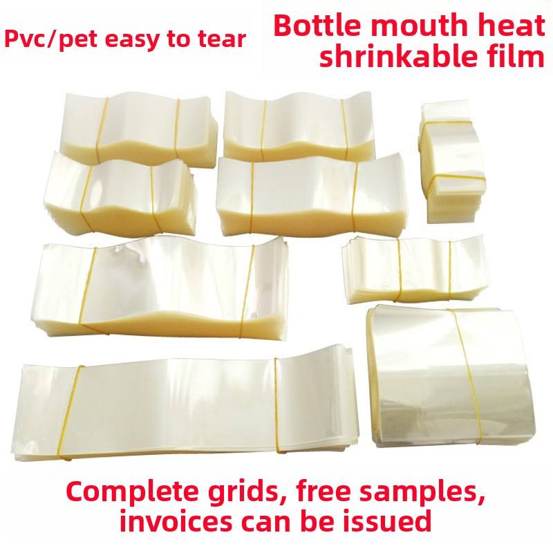 Botella transparente PET PVC PET Película termorretráctil Stock Película de sellado de plástico abierto de dos extremos para tapa de botella de vidrio para uso de gelatina