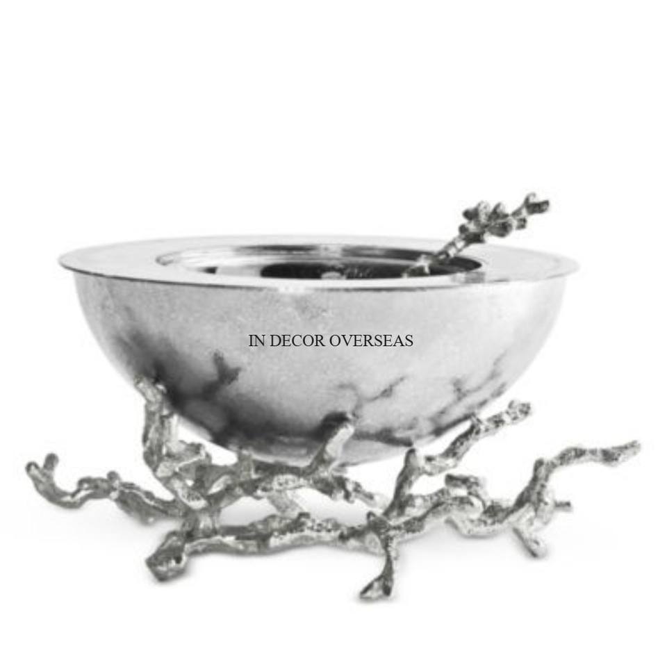 Cuenco de forma redonda hecho de vidrio transparente con ramas de árbol de Color marrón Base de diseñador Suministros de cuenco para servir y decorar