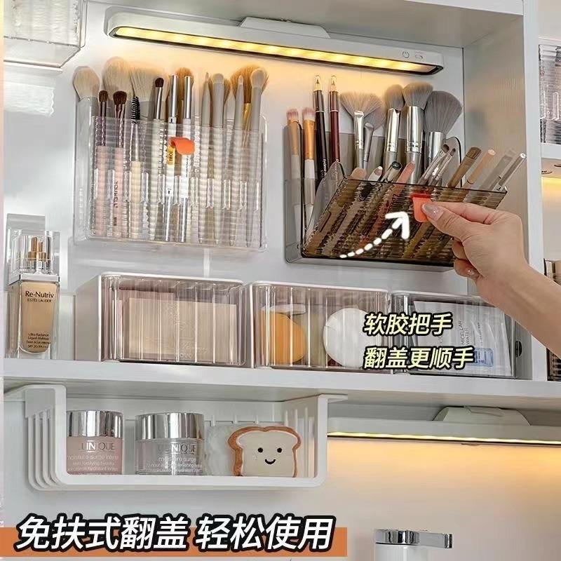 Organizador de cosméticos transparente con cajones para brochas de maquillaje, lápices labiales, delineadores y lápices de cejas, caja de almacenamiento montada en la pared