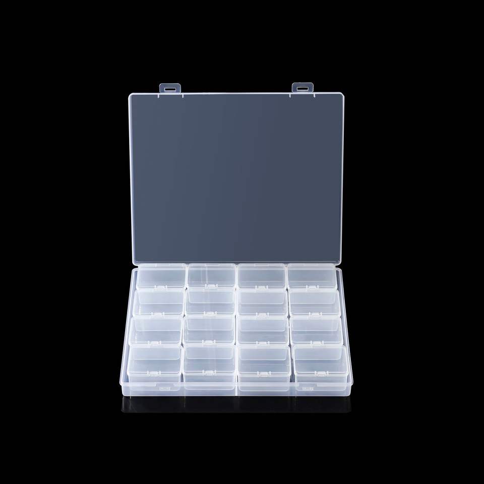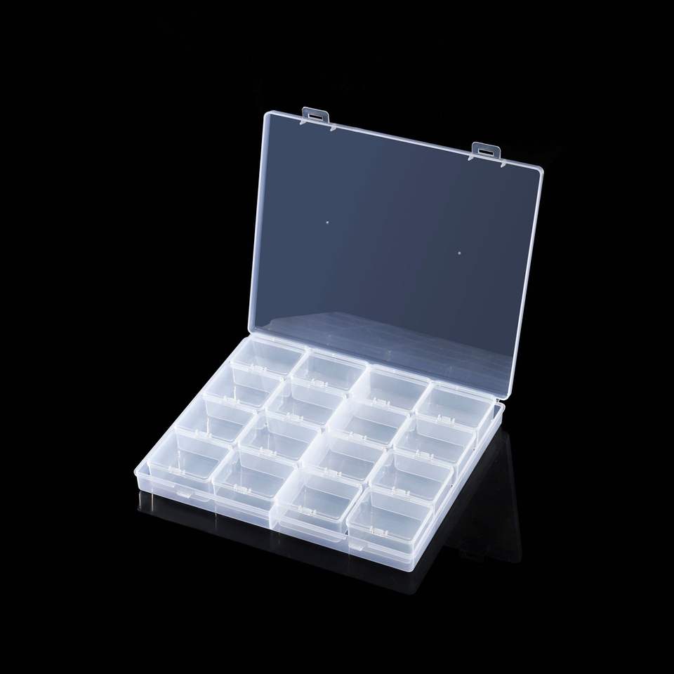 Organizador de escritorio transparente, caja de almacenamiento de 4 filas y 16 compartimentos para accesorios de decoración de uñas, contenedor sellado de plástico