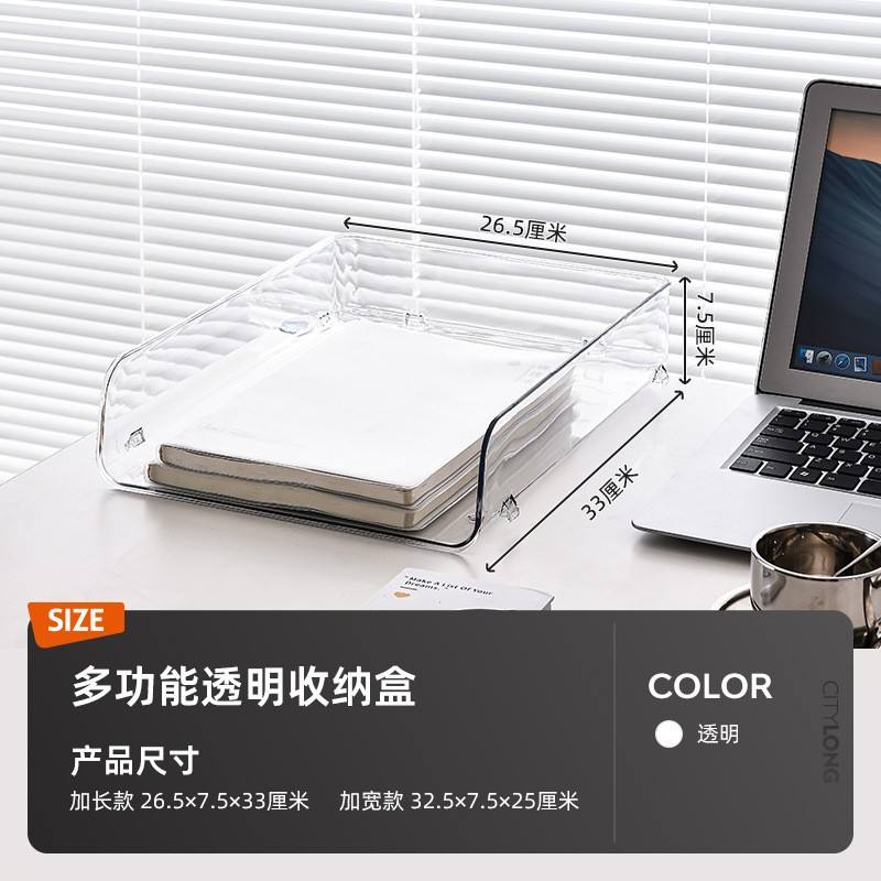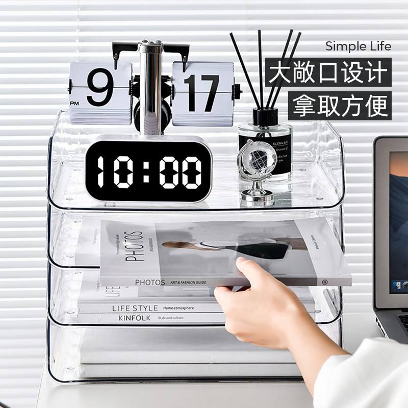 Caja de almacenamiento transparente para escritorio, organizador de cajones apilable tamaño A4 para libros de oficina y papelería
