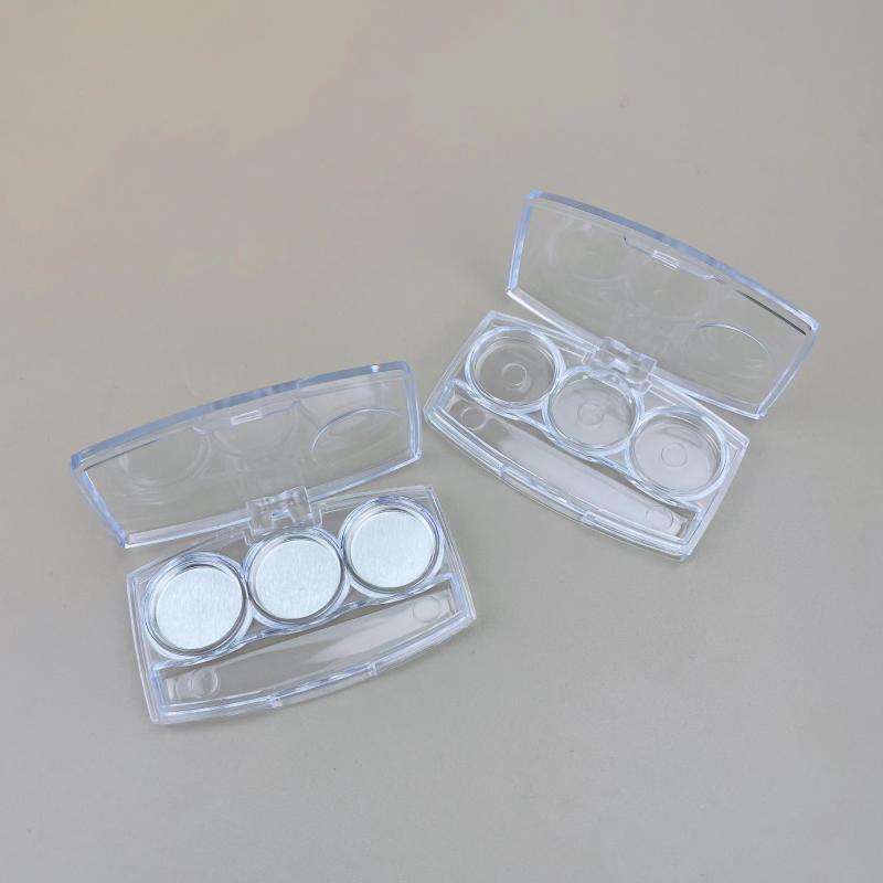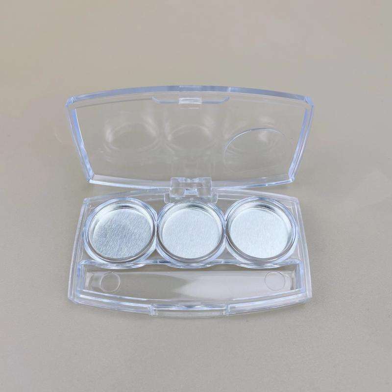 Paleta de sombras de ojos transparente vacía, caja de muestra de embalaje cosmético DIY de tres colores para pruebas y almacenamiento de maquillaje