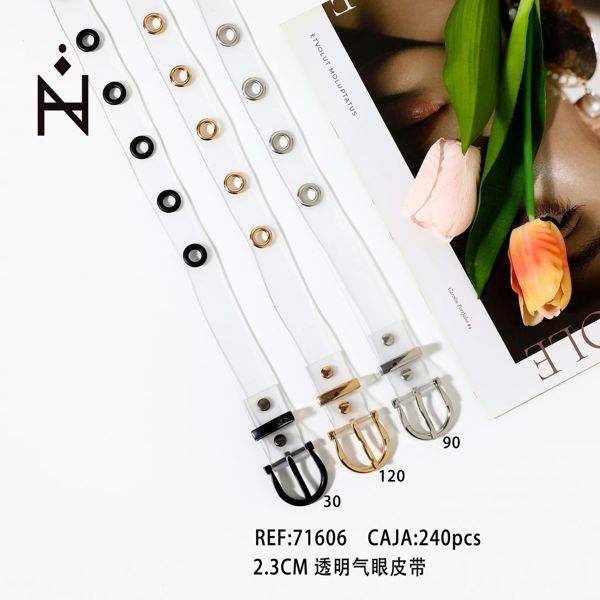 Correa Transparente con Ojales de 2.3 cm para Mujer, Cinturón de Moda con Hebilla Metálica