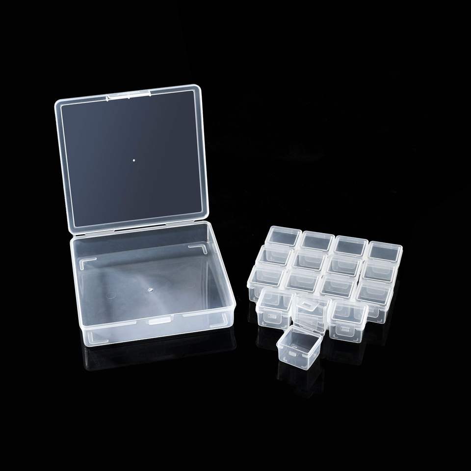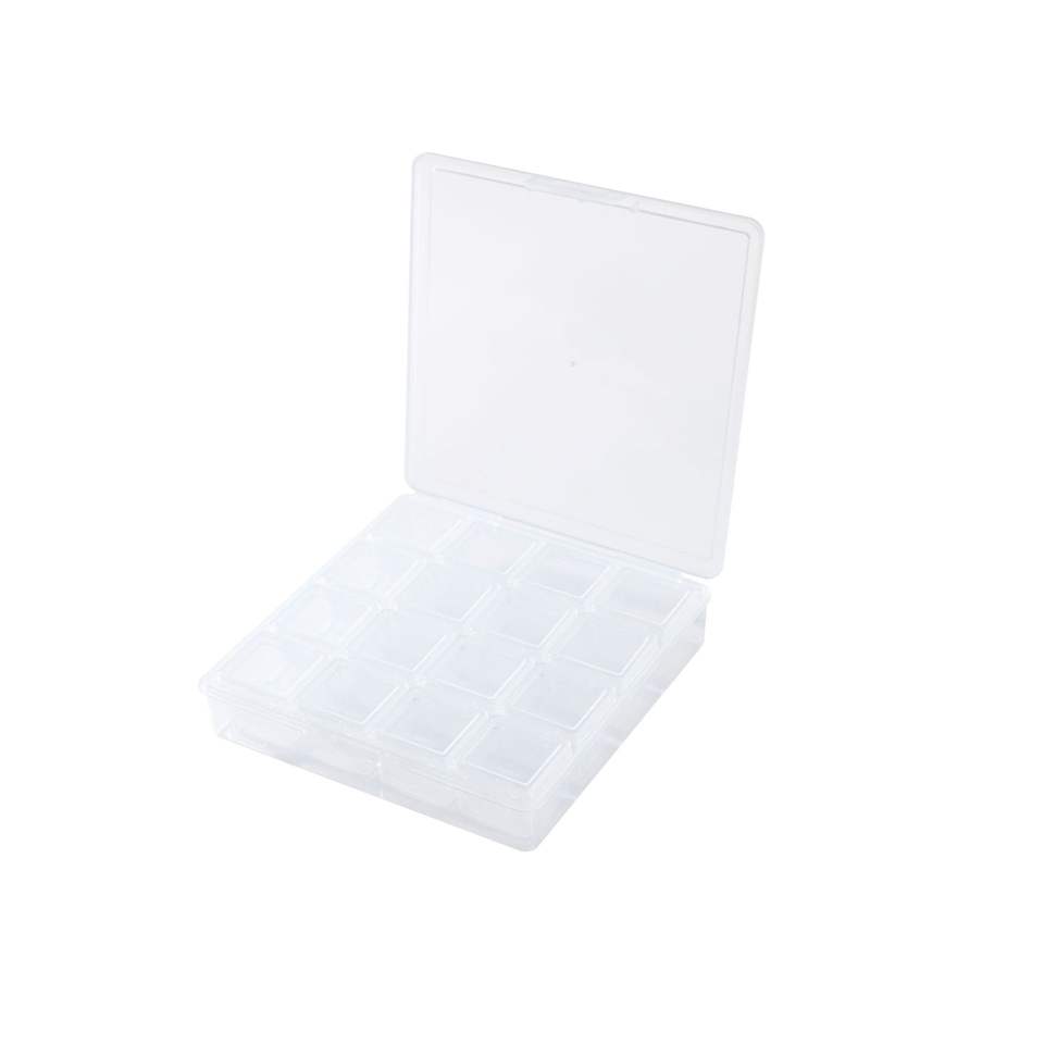 Caja transparente para aparejos de pesca con 16 compartimentos, estuche de almacenamiento con divisor cuadrado para accesorios y tarjetas de armadura
