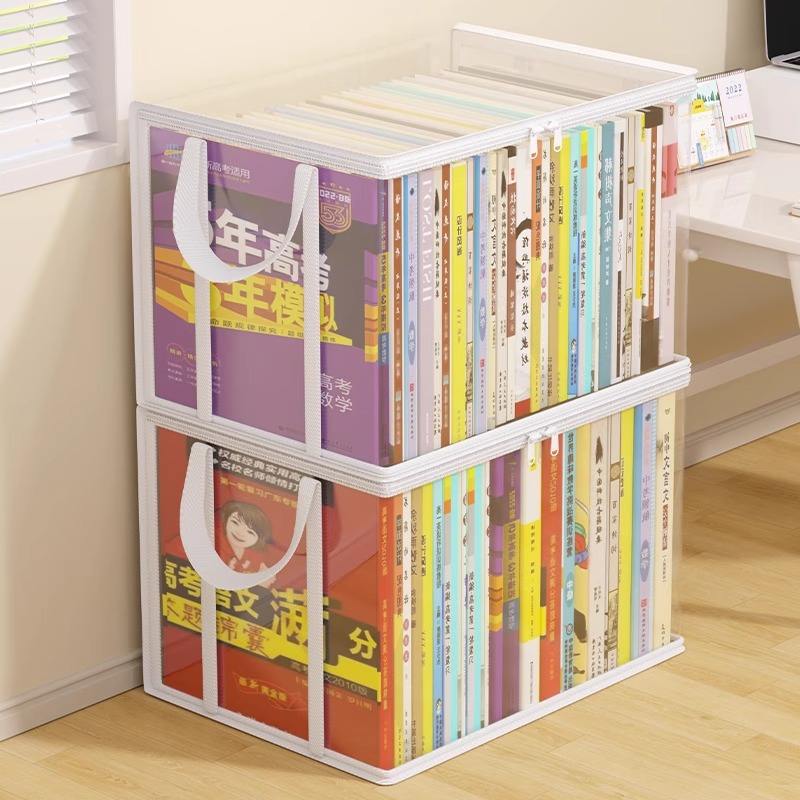 Caja de Almacenamiento de Libros Transparente y Plegable de 18L, Rectangular, para Dormitorio de Estudiantes, Herramienta de Organización para el Aula, Tipo Vertical de Color Sólido