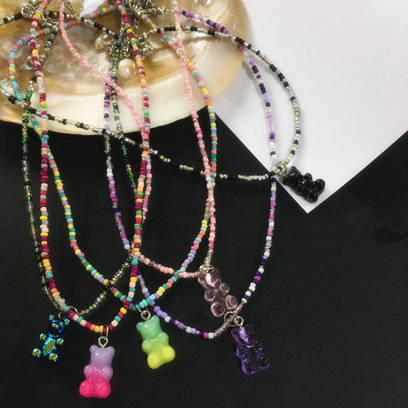 Collares con cuentas de arcoíris de oso de goma degradado transparente para mujer, collar con colgante de oso de semilla de Color caramelo, joyería Y2K